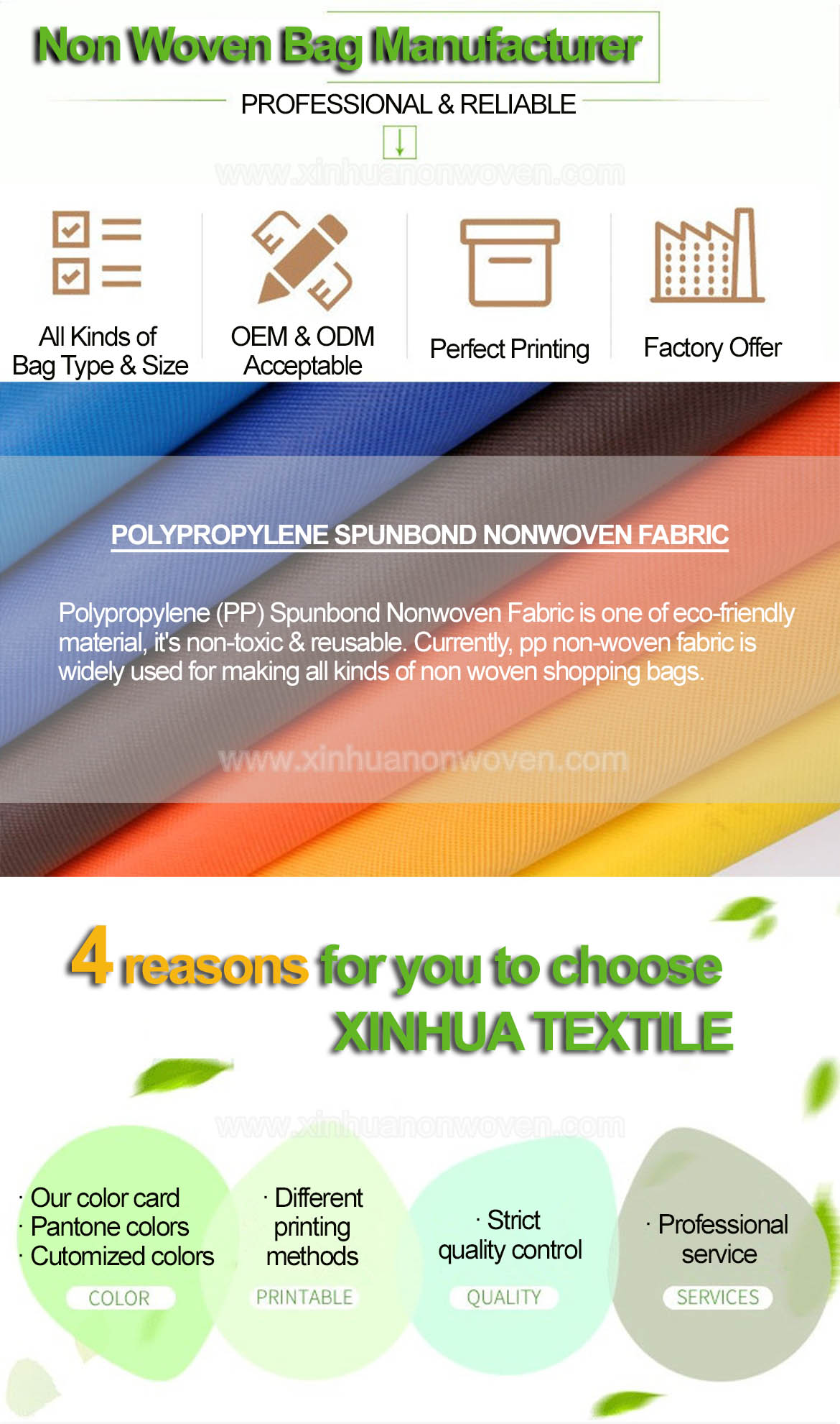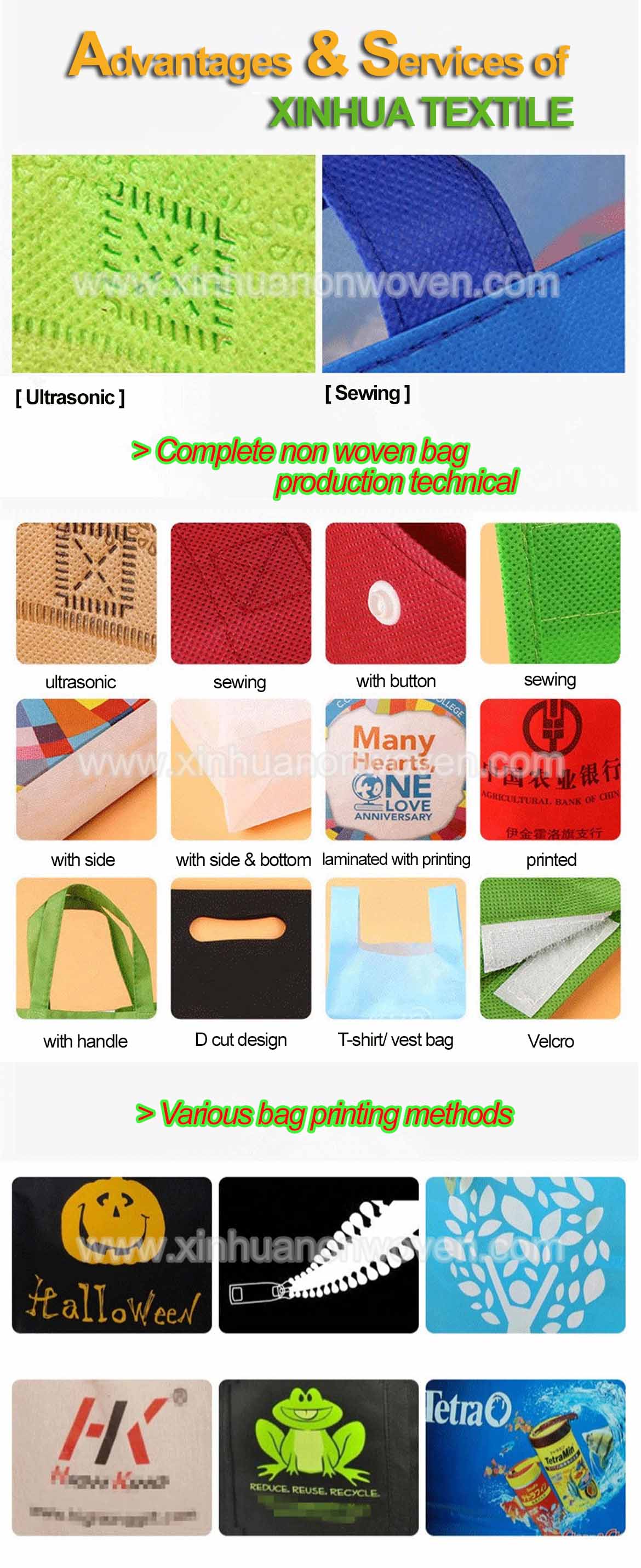 | XINHUA TEXTILE accept all kinds of customized NON WOVEN BAGS in various sizes! | |