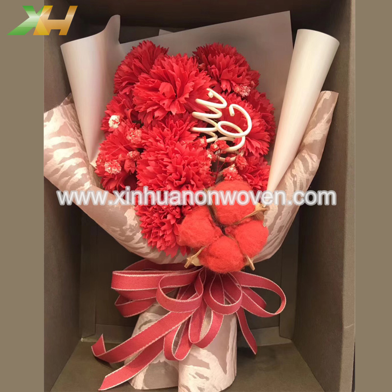 Bouquet non woven wrapper is soft, tough, and resistant to damage. Its smooth surface won't scratch flowers. It's also environmentally friendly and biodegradable, making it a popular choice for DIY floral arrangements and commercial bouquet packaging.